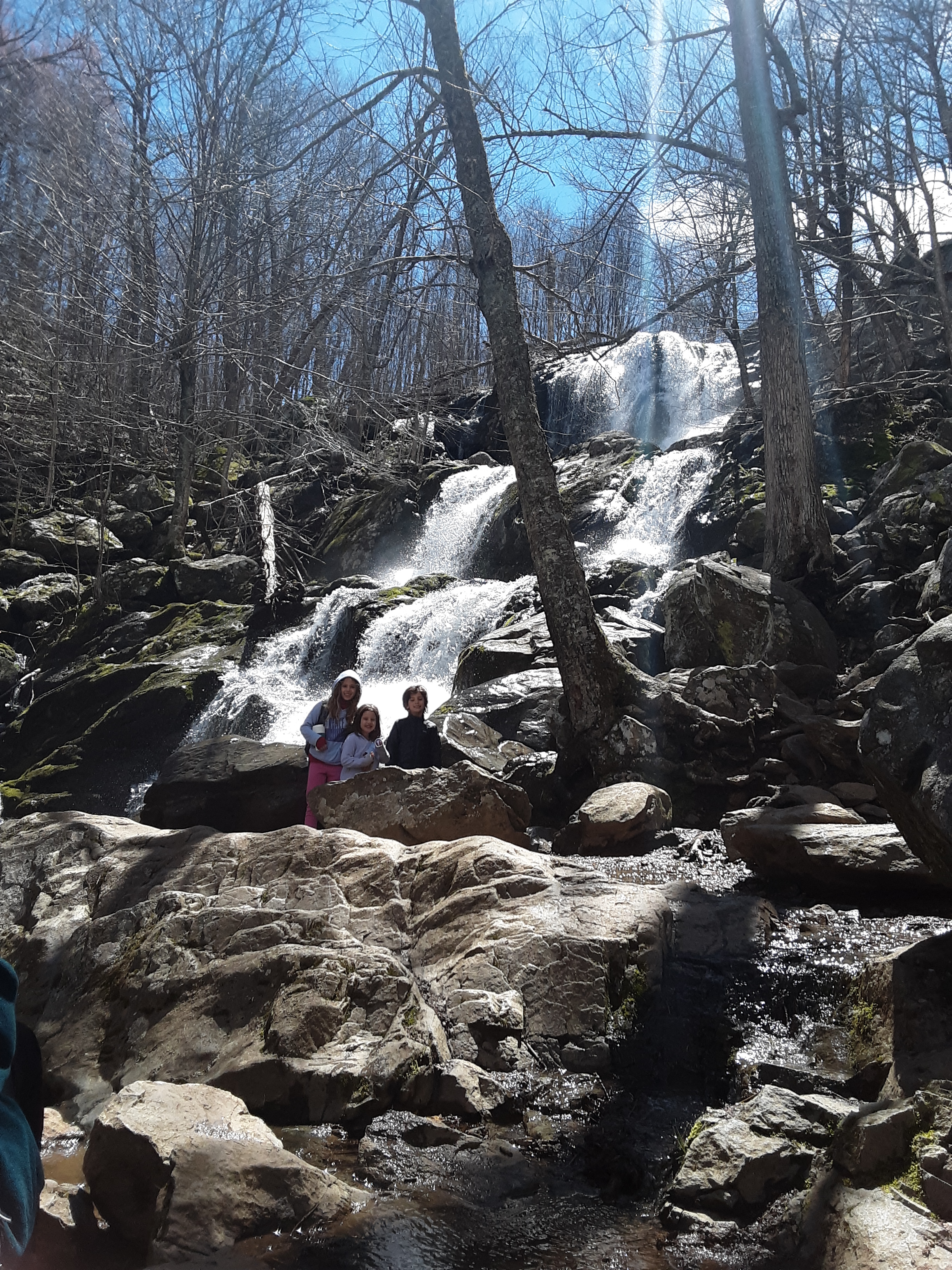 We hiked the very forgiving Dark Hollow Falls Trail and witnessed the early spring rush of water pouring down the falls. It was a beautifully sunny, but cool day and the whole family really enjoyed the hike. The trail is very well maintained and even our four year old handled it with ease. We had snacks near the viewing area and enjoyed the scenery. The kids got wet standing in the mist near the base of the falls as Cristina and I took pictures. I hope my children will remember that hike throughout their life as I have.