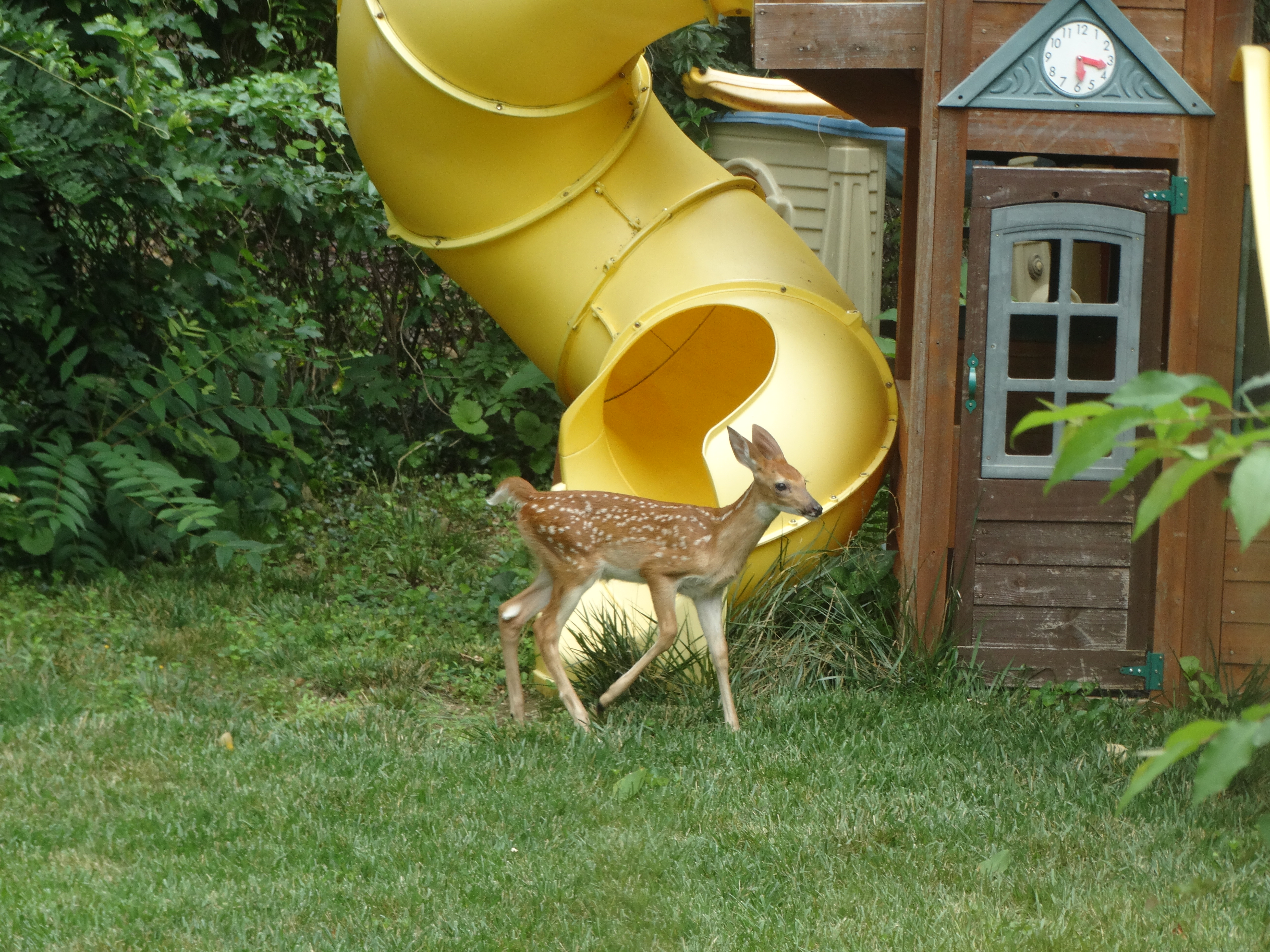 A deer in the backyard always creates excitement in my house but make it a young deer, or, better yet, a really young deer and you get a bit more joy mixed in with the excitement.