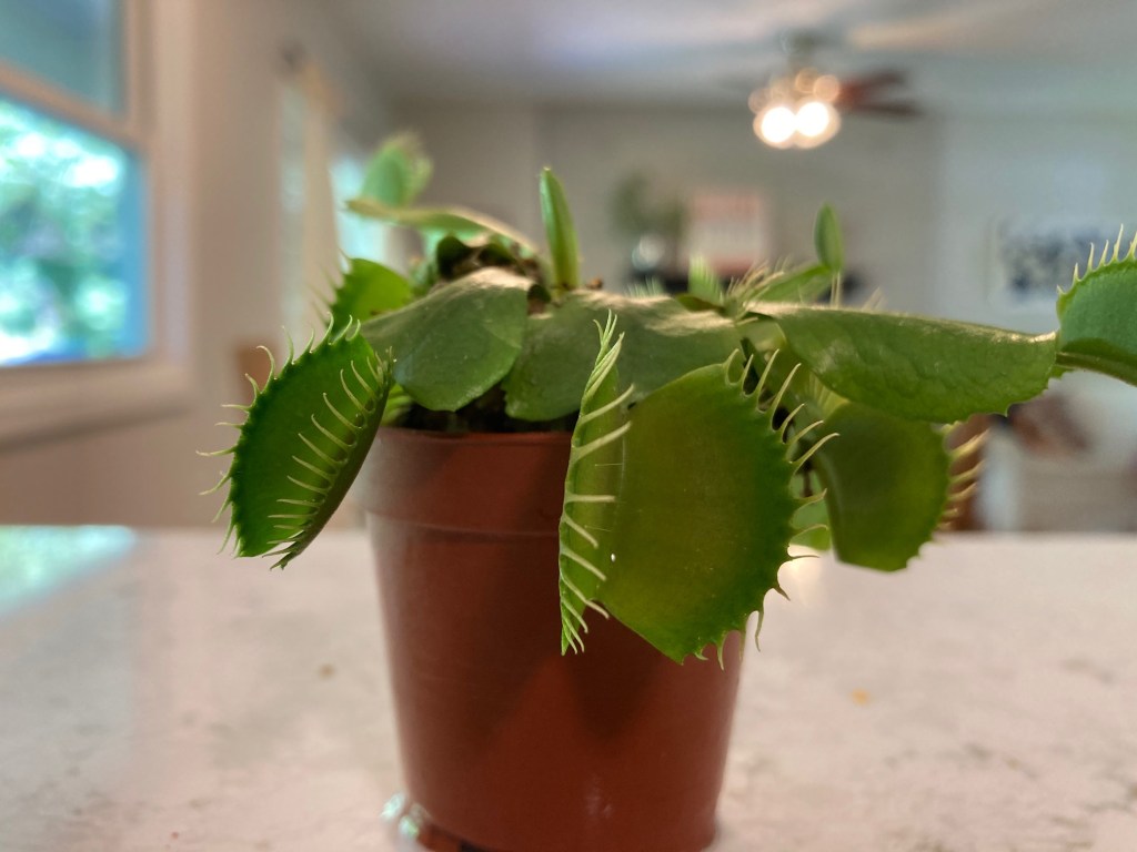 Enter the newest member of our household – a Venus fly trap (two actually because the first one quickly started dying for reasons of which we are still uncertain). We bought a second type of Venus fly trap about two weeks after the first and then miraculously the first fly trap revived and started growing new stems. Currently both fly traps share the same space and seem to be getting along just fine.